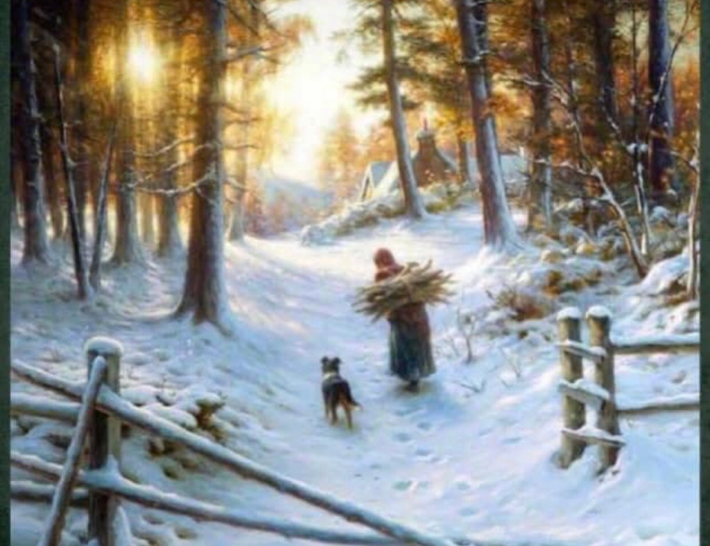 Har du lagt merke til hvor mange vinter og julebilder som handler om å gå fra noe mørkt og kaldt, en skog for eksempel, og mot et lite hus, en kirke, en lysning- fra det strevsomme til det trygge. Vi ser for oss at personen på bildet er på vei mot varme, hygge, fellesskap, glede.